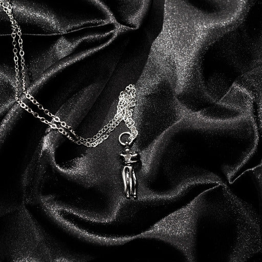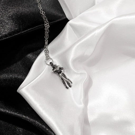 Niepowtarzalny naszyjnik z zawieszką „Uścisk” to doskonały wybór dla osób, które cenią sobie nietuzinkowe dodatki i klimat punk-rocka. Wykonany z wysokiej jakości stali nierdzewnej z galwanicznym wykończeniem, zachowuje swój wygląd przez długi czas.