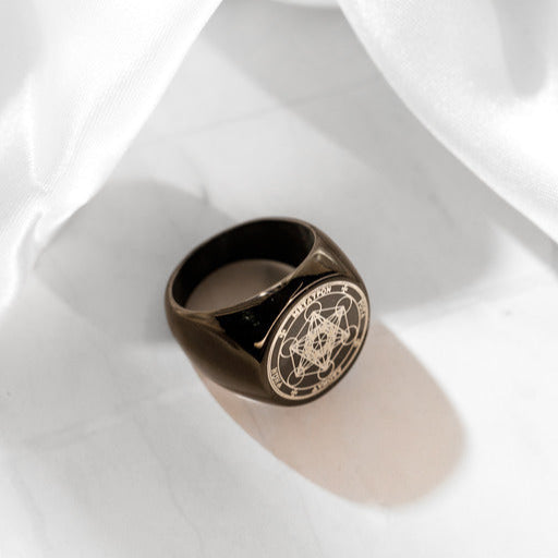 Symboliczny pierścień z motywem pieczęci Salomona, wykonany z wysokiej jakości stali nierdzewnej. Idealnie sprawdzi się jako amulet lub stylowy dodatek do codziennego stroju.