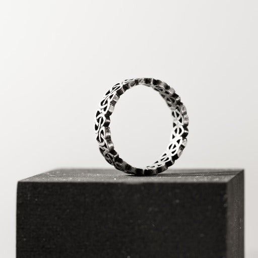 Solidny pierścień z celtyckim wzorem symbolizującym jedność i wieczność. Wykonany z wysokogatunkowej stali nierdzewnej, wytrzymały i ponadczasowy.